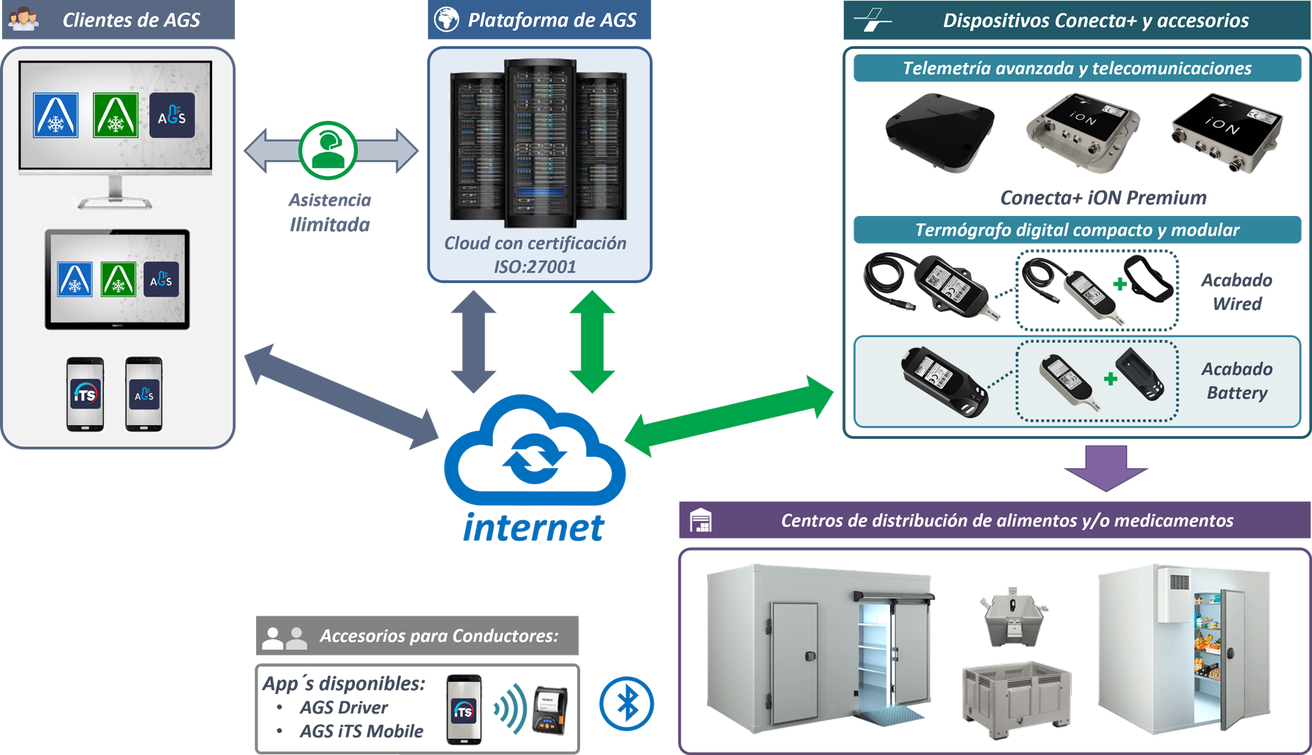 AGS technology allows real-time control and centralized management, from a single interface, all kinds of cold rooms belonging to food and/or pharma/medicine distribution centers, from the headquarters, and also through mobile devices.