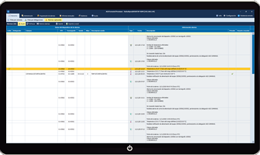- Panel de visualización on-line de todas las alarmas e incidencias relevantes acontecidas, tanto las pendientes de leer como el histórico de éstas, ya sean originadas por los dispositivos Conecta+ o por incidencias que se hayan producido en el centro de distribución, por p. ej. de comunicación y alimentación.